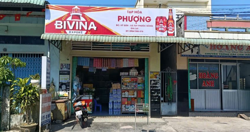 1. Bảng hiệu trong hình là loại bảng hiệu bạt Hiflex lót tôn (có khung sắt) kết hợp hình thức quảng cáo tài trợ từ nhãn hàng bia